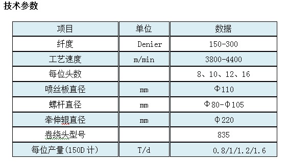 設備用于生產滌綸FDY全牽伸絲,該絲主要用于服裝、床上用品、裝飾用品、產業用的土工布、過濾布等。